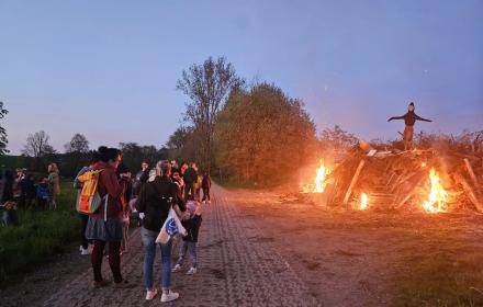 und Getränken starten wir in den Abend. Mit Einbruch der Dunkelheit geleitet euch das Feuerwehrauto wieder mit Fackeln zum Maifeuer, wo euch Stockbrot und ein schöner Abendausklang erwarten.